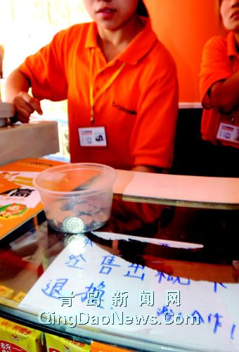昨天下午,記者隨威海路工商所執(zhí)法人員趕到“貝貝高”兒童樂(lè)園。在銷(xiāo)售游戲幣的柜臺(tái)上,記者看到柜臺(tái)玻璃里面貼著一張標(biāo)有“本柜臺(tái)票幣已經(jīng)售出概不退換”的告示。女店員解釋?zhuān)斑@是店里的規(guī)定。”“顧客要求退換,你們退不退呢?”記者問(wèn),一個(gè)姓童的店員稱(chēng),“應(yīng)該退。”“這張告示豈不成了擺設(shè)?”記者追問(wèn),店員沒(méi)有回答。