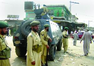 巴基斯坦軍隊4日在巴基斯坦瓦濟里斯坦地區警戒。新華社發