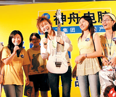 譬如,當(dāng)這位“超級(jí)偶像”穿過(guò)紅地毯進(jìn)場(chǎng)時(shí),鎂光燈頻閃,彩花飛舞。一上臺(tái)她就來(lái)了個(gè)冷幽默:“今天搞得和結(jié)婚一樣,飄那么多彩帶。”捧著歌迷送來(lái)的十幾束鮮花,她笑言:“我感覺(jué)自己像花癡”。當(dāng)“深圳玉米基地”的代表為春春送上一把電吉他時(shí),她調(diào)皮地說(shuō):“都這么熟了,你們這么客氣干嗎呢?”并當(dāng)場(chǎng)揭自己的短:“本來(lái)我不會(huì)彈吉他,可就為了這把吉他,我不學(xué)實(shí)在對(duì)不起玉米。”免掉了虛偽的客套,我們永遠(yuǎn)也猜不出她下一句說(shuō)什么。當(dāng)主持人問(wèn)她,看到這么多“玉米”激動(dòng)不激動(dòng),她竟然把玩笑轉(zhuǎn)嫁到主持人身上:“大姐是你激動(dòng)吧,你那么多汗。”她的幽默再次贏得玉米的尖叫。