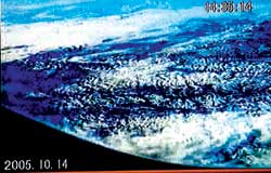 10月14日14時35分,神舟六號航天員傳回的畫面,畫面中展示的是從太空看到的中國大地。新華社發(fā)