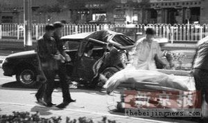 事發珠市口十字路口西南50米處。凌晨2時40分許,現場拉起警戒線,多輛警車和救護車在現場。