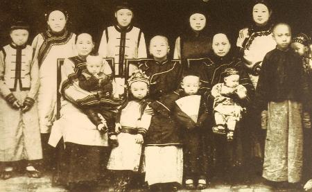 巴金幼年時的全家照。左三是外婆抱著巴金。右三是巴金的母親。圖片來源:新華網