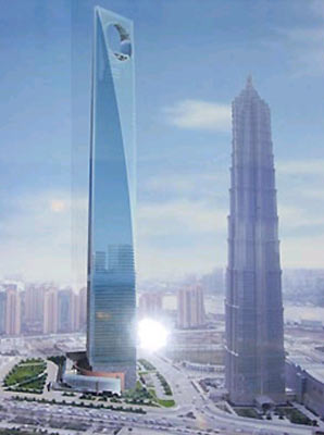本設在大樓頂部的圓形風洞改為倒梯形,預計中心將于2008年初竣工。據介紹,上海環球金融中心主體建筑設計高度為492米,共有101層,建成后將成為上海浦東的新地標。