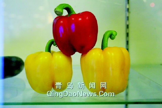農交會上有些產品是用來展示的,雖然不能“據為己有”,但也可以讓人大飽眼福。昨天,農交會上的紅色“青椒”和黃色“青椒”就讓紀春玲感到很驚奇。據參展方平度市崔家集鎮坊頭村農民蔬菜協會工作人員介紹,它們分別叫方舟、白公主,都是新培育的品種。萊西的壽桃也來助興了,“中華壽桃”小的有半公斤,大的近1公斤,讓人垂涎欲滴。