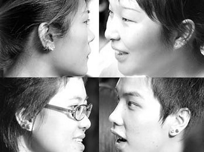 小湘告訴記者,一年多前她還是在校中學(xué)生,受“韓潮”的影響,她喜歡韓國的服飾、裝飾品、公仔娃娃等,后來還迷上了在韓國流行的“穿孔美體”。去年,她離開學(xué)校后很快就迎合了“時尚潮流”,最初是在雙耳上各扎了兩個孔,佩戴兩款耳環(huán),結(jié)果遭來保守的父母反對,不過這并沒有阻礙她進(jìn)一步的穿孔計劃。