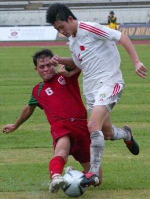 宇攻入唯一一球。對(duì)于中國(guó)少年來(lái)說(shuō),輸?shù)暨@樣一場(chǎng)比賽要背負(fù)很大壓力,因?yàn)槊霞永?duì)的世界排名要比中國(guó)隊(duì)整整低104位!按照國(guó)際足聯(lián)10月最新排名,中國(guó)隊(duì)列第65位,而孟加拉僅排在169位。不過(guò),以目前國(guó)青三隊(duì)的陣容去對(duì)抗比自己大4歲的對(duì)手,這場(chǎng)比賽輸?shù)貌⒉灰馔�。面�?duì)人員極度不整的現(xiàn)實(shí),主教練賈秀全坦言,“這是我需要面對(duì)的新問(wèn)題。”2006年,足協(xié)給國(guó)青安排了一系列高質(zhì)量熱身賽,但賈秀全卻說(shuō):“再好的比賽如果沒(méi)有球員參加也是白搭�!�