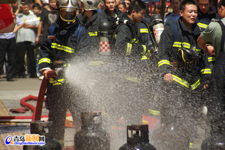 搬出的煤氣罐被消防員迅速冷卻 消防人員正在檢查設備準備闖入“火線” 青島新聞網9月9日訊 今日上午11點半左右,位于河南路與大沽路交匯處的一個燒烤店突起大火,消防員冒火奮力搶出十多個已被燒黑的煤氣罐。截至記者發稿時,火已撲滅,周圍秩序恢復正常。 記者在現場看到,滾滾濃煙從飯店天花板冒出,數位消防員戴著氧氣面罩摸索進樓房夾層。據 為防止火勢惡化,消防員將飯店灶間的十多個煤氣罐第一時間搶出,被火熏黑的煤氣罐瞬間冷卻,成為一個個豎在人行道上的黑疙瘩。經過近半小時的努力,大火被撲滅。消防人員告誡市民,室內應注意通風、易燃物品應盡量隔離放置。(青島新聞網記者 周琦) |
