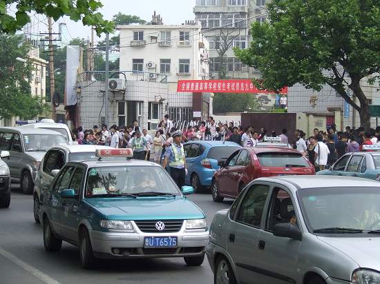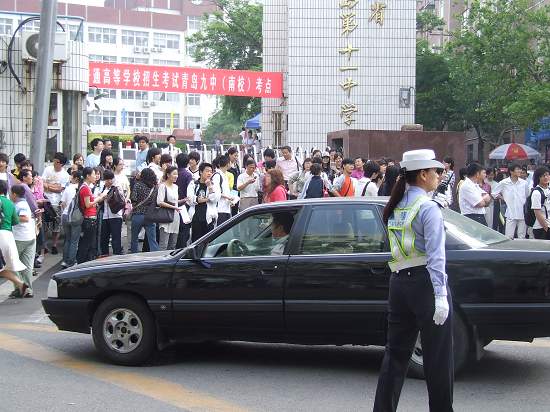 青島新聞網(wǎng)6月7日訊 今天上午9時(shí),一年一度的高考又拉開(kāi)了大幕,我市將有4.38萬(wàn)名考生在全市36 個(gè)考點(diǎn)參加考試。上午7點(diǎn)多,記者趕到青島九中(南校)考點(diǎn),學(xué)校門(mén)口路段已經(jīng)被趕考學(xué)生及家長(zhǎng)圍得水泄不通。