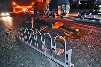 ????早報訊 隨著緊急剎車聲和連續的碰撞聲,跌跌撞撞的白色面包車在路上跑出“之”字形,20多米長的護欄被撞倒在地,面包車撞在海爾立交橋橋邊護欄上,副駕駛座位上渾身是血的男青年被拖出車外。“前不久一名懷孕9個月的孕婦乘坐的轎車也在這段路上被撞,這都是對面汽車大燈晃眼惹的禍。”前天夜里9時20分左右,海爾立交橋下橋路段再次發生車禍,途經此處的目擊者稱。 ????面包車失控撞倒20米護欄 ?? ????記者聞訊趕到現場看到,在黑龍江中路海爾立交橋北向南下橋路段,20多米長的護欄扭曲變形倒在地上,裝著爆閃燈的隔離墩翻倒在地,一輛嚴重變形的白色面包車停在路邊,車頭頂在橋邊的護欄上,左前側車輪飛出四五米遠,右前側車輪在撞擊中變形折斷,一整塊破碎的前擋風玻璃橫在橋下的溝里,右后側車門在撞擊中變形翹起,副駕駛座位上還有斑斑血跡。 ????記者注意到在面包車后面留下了50多米長“之”字形的剎車痕,車后3米處留有一攤血跡。據目擊者稱,車禍發生后,車內受傷較輕的4人將副駕駛座位上渾身是血的男子拖出車外,就平放在車后血跡處,120急救人員剛剛將這名男子送上救護車。 ????一車闖進事故現場撞車 ????“前方道路受阻,請繞道行駛”正在處理現場的警車燈光閃爍,記者在現場看到,一輛哈飛轎車突然從北面沖了過來,等轎車司機看到正在處理的現場時急踩剎車,然而轎車車輪已經碾軋上了倒在地上的隔離護欄失控,司機急忙右轉,撞上了同向行駛的油罐車,油罐車司機急踩剎車,但車速太快,哈飛轎車被油罐車拖出六七米遠,在發生車禍的面包車旁邊停下,并未與面包車造成二次碰撞,轎車內3人和油罐車上1人幸未受傷,但黑龍江路北向南方向車道被完全堵住,110民警在現場以北100米處重新設定路障,20多分鐘后才恢復通車。 ????車燈晃眼下橋路成危險路段 “這是一段下坡路,面包車車速很快,司機可能是被對面汽車的大燈晃了眼睛,才會突然失控的。”出租車司機王先生稱,他每次經過這個路段都要減速慢行。記者從處理現場的民警處了解到,海爾立交橋下橋處為交通事故高發路段,主要原因是夜間經過該路段的車輛較多,大部分司機放松警惕車速較快,在下橋時因為對面駛來的汽車沒有及時把遠光燈轉成近光燈,司機被強光直接照射眼睛,會出現行為失當汽車失控。他們已經在路中間的隔離墩上設置爆閃燈提醒司機,希望司機們能夠自覺遵守交通規則,為自己和他人的安全及時變換車燈,小心駕駛。 ????昨天上午記者再次來到市第八人民醫院了解到,事發前面包車上5人剛在李村聚會,當時開車前往河西,車禍造成副駕駛座上的男乘客顱骨骨折,鼻軟骨骨折,胸部受到重創,但生命體征穩定,暫時沒有生命危險,其他4人均為輕傷。 (記者 黃飛 于 滈 攝影報道) ????相關鏈接 同一路段車禍頻發 ????10月17日夜里10時45分,25米長的藍色解放運輸車在海爾立交橋北向南下橋處急轉彎,后面駛來的紅色重汽自卸車剎不住車撞了上去,兩車堵了黑龍江路5個車道,就在交警設法拖動運輸車離開現場時,一輛綠色拖掛車剎車失靈沖進現場,為躲避圍觀人群與兩車二次沖撞,幸未造成人員傷亡。直到第二天中午11時30分,事故車輛被全部拖離現場,車禍造成千余輛車通行受阻。 ????10月22日夜里9時30分左右,黑龍江路海爾立交橋下橋口,一輛黑色吉利轎車、一輛白色面包車和一輛福田小貨車接連相撞,車上5人受傷,其中一名懷孕9個月的孕婦腹部受到撞擊,經過市第八人民醫院緊急搶救,產下一名健康的女嬰。 |