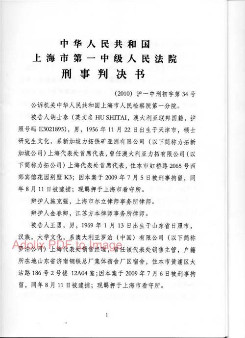 ????備受關注的力拓間諜案一審判決后,據力拓案長達68頁的判決書全文顯示,力拓涉案四名員工受賄及如何竊取中國鋼廠談判及內部商業機密諸多詳細情況和盤托出,與此前媒體報道相比,又新增涉案鋼企。
