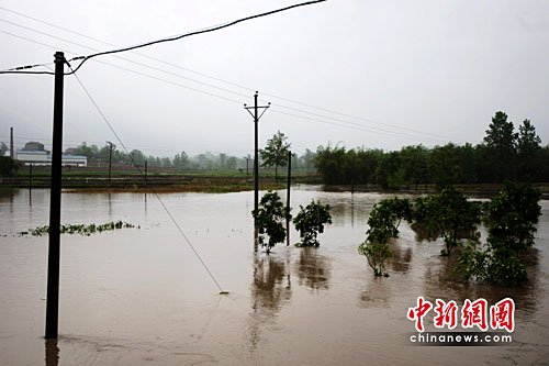 ????6日上午,記者在趕赴墊江縣的途中,天空仍飄著小雨。記者在沿途看到,墊江多處農田、林地被淹,有農戶房屋門前的道路被洪水阻斷。澄溪鎮陳家橋村村民稱,該村附近的一條河流一夜間漲水1米多,農田的低洼地帶大多都已被淹沒。