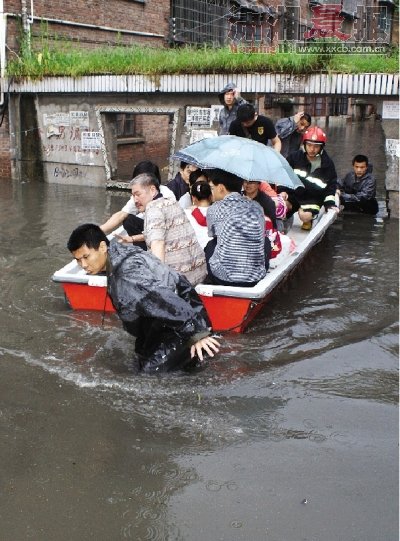 ????由于強降雨后街道排水不暢,導致積水太深,新化縣城成了“澤國”,一些街道被淹成“河道”。新化縣水車鎮車水村一位姓鄒的村民告訴記者,今天早上車水村遇上了上百年不曾遇見的水災,上了年紀的老人說他們一輩子都沒見過這么大的水,幾千戶居民家停水停電,很多牲口被淹死。