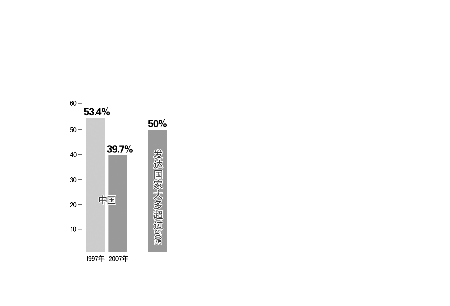 ????從1997年到2007年,中國勞動者報酬占GDP的比重從53.4%下降到39.74%;企業(yè)盈余占GDP比重從21.23%上升到31.29%,而在發(fā)達(dá)國家,勞動者報酬占GDP的比重大多在50%以上。