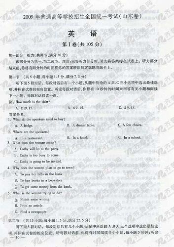 2009年山東高考英語試題及官方答案