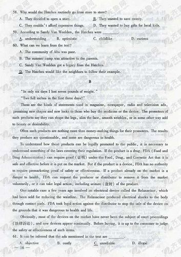 2009年山東高考英語試題及官方答案