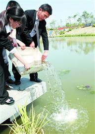 ????為保證魚兒放生后能夠存活,正式投放前,他們已經聘請青島理工大學的專業人員對李村河上游水質進行了檢測,確認水質完全達標適合魚類生存。投放后,他們還將每周組織人員對上游水質進行監測,一旦發現異常將嚴格處理。