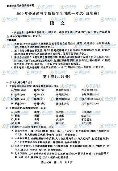 2010年高考試題 山東語文卷