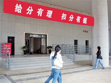 ????昨天中午,記者在山大理綜試卷閱卷點看到,閱卷點門外掛著“給分有理、扣分有據”“認真細致、嚴把標準”的橫幅,大門口有保安和武警把守,每名閱卷老師都佩戴貼有照片的閱卷證才能進入。值勤的保安告訴記者,學校在大門口安裝了監控頭,確保閱卷現場的安全,另外他們實行輪崗制,保證閱卷期間時刻有人值班。