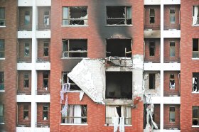 ????距離51棟樓50米遠的地面上,就有散落的玻璃碎片,該樓1/3的居民家窗戶玻璃被震碎,樓下的地面被玻璃碎片所覆蓋。小區內多輛轎車車窗玻璃被震碎,一些車頂上還蓋著一層玻璃碎片。有一扇窗戶從樓上被炸了下來,還有一張居民的床墊子被燒黑,后被小區保安清走。