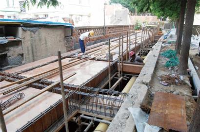????最值得一提的是,位于小院內最東邊的一條臭水溝開始改造。“這條溝很多年了,滿是污水,基本沒人敢靠近,最要命的是夏天,蚊子、蒼蠅滿天飛,根本沒法開窗。”家住廣饒路32號樓的張福堂大爺告訴記者。記者看到,臭水溝明渠已被覆蓋,變為暗渠,施工人員正在做箱梁加固處理,“覆蓋箱梁處理完后,就可以進行硬化了,辟出一塊籃球場地和一塊羽毛球場地,然后再安上一些小型健身器材,方便居民活動。”施工人員說。
