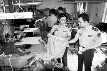 ????根據解放軍總后勤部反映,公安部門和工商部門很快發現,大量假軍服是從河北省石家莊市幾家服裝店賣出。公安和工商部門順藤摸瓜,在離石家莊40公里的井陘縣魏新村一個農家小院發現了生產窩點。87式、04式還有07式等軍服,這里都有生產,除了陸軍以外,還有公安、海軍、武警的服裝。