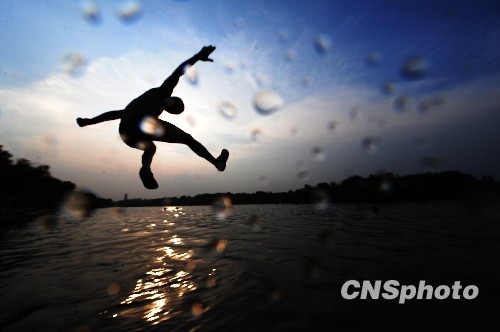 8月2日,江蘇揚(yáng)州市連續(xù)多天出現(xiàn)37℃以上的高溫天氣。當(dāng)日傍晚,許多揚(yáng)州市民來到當(dāng)?shù)氐摹疤烊挥斡緢觥薄U虾袘蛩睢?中新社發(fā) 孟德龍 攝