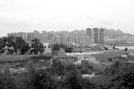小麥島已拆遷的房屋一片狼藉,與遠處的樓群形成鮮明對比。 記者 楊寧 攝