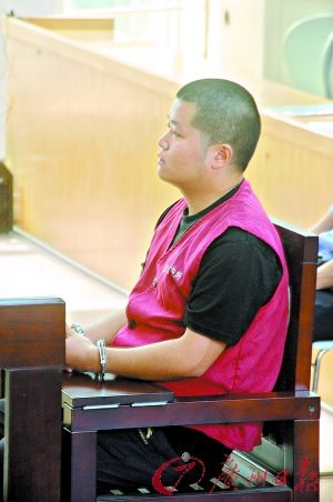 ????昨日,出現在法庭上的胡益華穿著一件黑色T恤和揭陽看守所的背心。進入法庭時,胡益華目不轉睛地盯著旁聽席,顯得很平靜。坐上被告席后,他的身子向左斜倚在靠背上,頭歪著,坐姿很放松。公訴人在念起訴書時,他似乎并沒有在認真聽,還向左扭頭望向門外扛著攝像機的記者,足足有好幾分鐘。隨后,他又向右扭頭看著窗外的房子發呆,再把頭轉回來,耷拉著。而在公訴人出示證據時,胡益華又多次走神,還不時搖頭晃腦活動頸椎。胡益華聽得最專注的,是公訴人宣讀的公安人員偵查及破案經過。在廈門被抓時,他說的第一句話就是“你們警察怎么這么快找到我了?”警方抓捕人員說:“估計你不會活著出去了,問這干什么?”胡益華說:“滿足一下好奇心。”