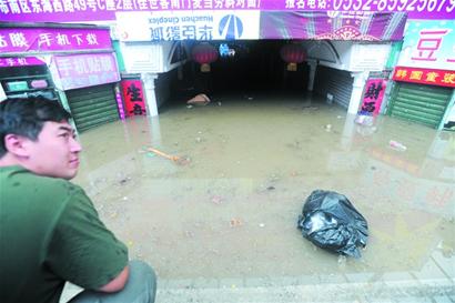 ????“我剛開(kāi)始還以為是因?yàn)橄麓笥瓴艜?huì)進(jìn)水,沒(méi)想到大水會(huì)這么深,等我反應(yīng)過(guò)來(lái)時(shí)什么都沒(méi)法往外拿了,連卷簾門都沒(méi)關(guān)上。”記者趕到地下通道的南側(cè)入口看到,30多名業(yè)主站在地下通道的平臺(tái)上,看著已經(jīng)被大水淹沒(méi)大半的商鋪痛心不已。記者從平臺(tái)往下走了3級(jí)臺(tái)階就被黃褐色的污水擋住,大部分商鋪都關(guān)上了卷簾門,但深約2米的污水仍然將商鋪大部分淹沒(méi),原本熱鬧的地下通道只漂著深綠色的垃圾桶和一些塑料袋。