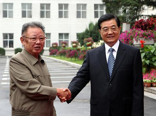 8月27日,中共中央總書記、國家主席胡錦濤在吉林省長春市同朝鮮勞動黨總書記、國防委員會委員長金正日舉行會談。新華社記者鞠鵬攝