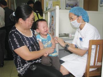 ????六醫預防保健科主任陳文美告訴記者,接種第一天特別累,來接種疫苗的人都集中在上午,大約130多人,下午僅有20多個孩子來,如果上午和下午能中和一下人數,工作人員的壓力可能會小很多。“今天來的孩子,有一半都是不‘守時’的,原本第一天是1歲左右的孩子,可其中有一半是幼兒園和小學的孩子,過幾天1歲左右的孩子難免還會和其它年齡段的孩子擁擠在一起。”陳文美說,每個孩子的接種通知書上都標明了接種時間,建議家長遵守時間安排,避免門診擁擠。