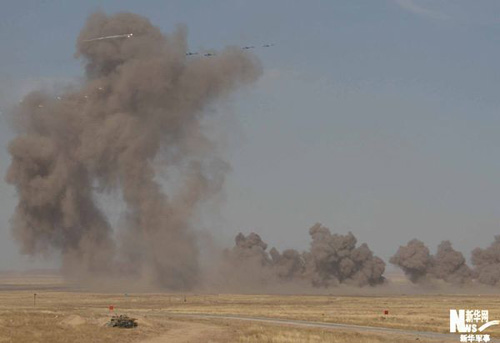 上合軍演舉行首次合練 殲十轟六跨境轟炸(圖)