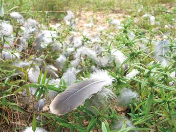 ????記者沿途看到,在斷樹旁邊的草叢中,散落了許多鳥的羽毛。記者仔細查看周圍,沒發現鳥網。“網鳥的不法分子都是凌晨三四點鐘下手,天一亮他們就收網跑了。”正在浮山上挑水的孫先生告訴記者,地上的鳥毛都是網鳥者現場拔下來的,網鳥者會把被網纏得太緊的小鳥弄死,現場拔掉鳥毛,這樣就能保證鳥身上的脂肪不被消耗,賣的時候更肥一些。據了解,一只死斑鳩的價格在市場上能賣到十六七元,而活的斑鳩在飯店里能賣到30元。