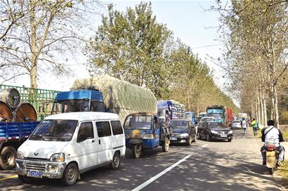 ????記者繼續(xù)往前走看到,果然有3輛拉著巨型鍋爐的貨車停在路邊,鍋爐都是圓形的,每個都有十幾噸重,直徑達(dá)到10米左右,而204國道該段的路寬才14米。“這3個大塊頭往前走的時候,前方發(fā)生車禍過不去了,他們只好停下,結(jié)果它們龐大的身軀又導(dǎo)致該路段車輛無法通過,最后越堵車越多,這3個大塊頭再想走已經(jīng)走不了啦。”膠南市交警大隊二中隊一名交警告訴記者,事發(fā)后,他們派七八名交警緊急趕到現(xiàn)場,一邊安排車輛將車禍現(xiàn)場的車輛移走,一邊疏散交通,直到昨天下午1時左右,現(xiàn)場的交通秩序才恢復(fù)正常。