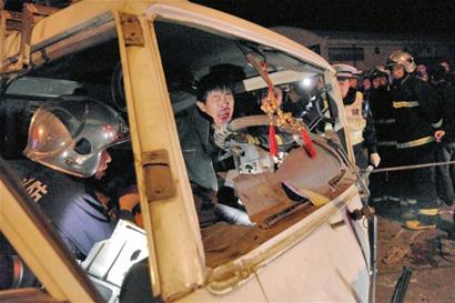 ????販菜的老張開著輕卡車?yán)卉嚨奈骷t柿黃瓜連夜去撫順路批發(fā)市場(chǎng)送菜,行駛到黑龍江路與長(zhǎng)沙路交界處時(shí),一輛迎面駛來的長(zhǎng)風(fēng)越野車突然撞破護(hù)欄沖上逆行車道,撞在老張駕駛輕卡車的車頭左側(cè),老張和在后座睡覺的妻子被困車內(nèi)。前天夜里11時(shí)30分左右,119消防隊(duì)員聞?dòng)嵹s到現(xiàn)場(chǎng),使用液壓剪和破拆器破開駕駛室,在周圍市民的幫助下,用消防車拽開變形的駕駛室,將被困夫婦救出。