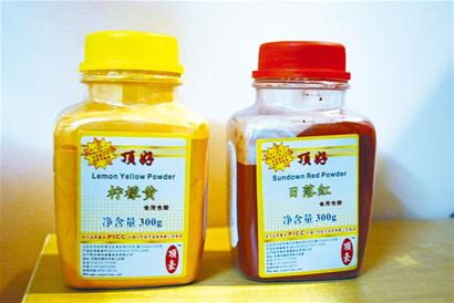 ????記者后來采訪有關專家了解到,這般銷售色素,看似公開透明,其實并不合規。盡管“檸檬黃”、“日落黃”、“日落紅”是食用色素,所謂人吃沒事,可以用于果汁飲料、碳酸飲料、配制酒、糖果、糕點、腌制小菜等。但未經農業部審查批準,濫用這些色素可能對動物及食用動物產品的人體造成傷害。