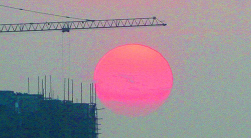 ???10月28日17時許,從徐州路望去,火紅的太陽緩緩消隱在西邊的云霧中。當(dāng)日,本市風(fēng)力有所減弱,氣溫也開始逐漸回升,預(yù)計29日本市氣溫在9℃至17℃。記者 孟達(dá)