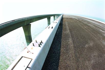 ????海灣大橋建成通車后,安不安路燈?山東高速集團海灣大橋項目部的工作人員介紹說,將來的路燈都安裝在橋兩側的護欄上,目前,已在紅島連接線做了一段試驗段。