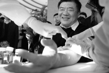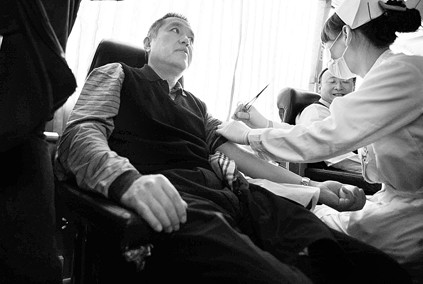 衛(wèi)生部部長陳竺正在進(jìn)行獻(xiàn)血前的檢查,這已經(jīng)是他擔(dān)任衛(wèi)生部部長以來第三次無償獻(xiàn)血