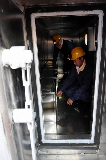 ????日前,由河南中平能化集團機械制造有限公司自行研究設計制造的“礦用可移動式救生艙”首個樣艙制造完成。這座“礦用可移動式救生艙”是礦山井下的救生裝置,主要用于發(fā)生礦難時遇險人員緊急避難。其密封艙體可容納10人,艙體內設有座椅、照明、通訊、供氧、急救箱、必需的食品飲用水、有毒有害氣體處理裝置,并可以調節(jié)艙內的氣溫和濕度。礦山下一旦發(fā)生爆炸、火災等事故,該裝置可立即啟動,供受困人員使用。遇險人員在遭遇礦難后無法撤離或逃生線路受阻,只要進入倉體,即使外界已經無法提供生存條件,但艙內仍至少可提供96小時的生存保障。