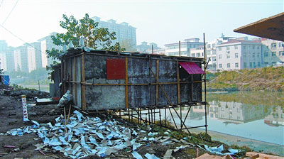 ????記者發現,除了危險,這里住宿條件也很惡劣,黃孝河水質渾濁發臭,河邊到這個季節還有不少蚊蠅。工人們也說,希望施工方能在附近租幾間民房給他們住。(記者 李芳)