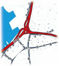 ????根據 《青島市城市綜合交通規劃》,市區快速路網規劃為“三縱四橫”,其中“三縱”分別為膠州灣高速公路及其延長線、重慶路快速路、青銀高速公路市區段;“四橫”分別為東西快速路、杭州支路-鞍山路快速路、海灣大橋青島端接線、仙山路快速路。東西快速路一、二期已分別于2002、2003年建成通車,2007年開工建設東西快速路三期工程。工程計劃于明年上半年與海底隧道及其接線工程同期建成通車。