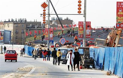 ????隨后記者又來到了東西快速路三期工程的另一端,即與現(xiàn)狀快速路交會處,膠州路與長清路路口,它是東西快速路三期工程的東端。隨著市場三路、聊城路一帶老房拆除,該標段同樣進展順利。在施工現(xiàn)場記者看到,盡管天氣較為寒冷,但工地上的建筑工人干得熱火朝天。在膠州路與長清路交會路口,站在現(xiàn)狀快速路上,自東向西往右看,一段弧形橋體已高高聳起,下橋口與快速路親密相連。