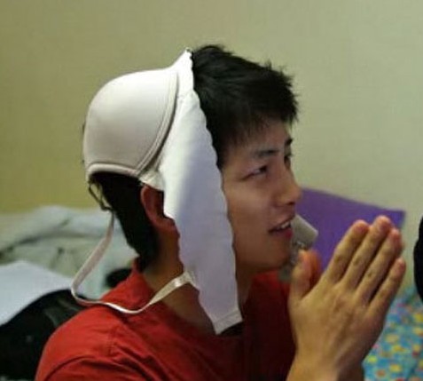 ????報道指出,日前在韓國網絡社區中出現了一張宋鐘基頭頂胸罩、姿勢搞笑的照片。正就讀于成均館大學經營系的宋鐘基看起來像是在為校內聚會中的個人表演而做男扮女裝的準備。