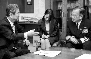 9日,美參聯(lián)主席馬倫與日本防相北澤俊美會談。盡管東亞地區(qū)的軍演仍在進行,但局勢已有緩和跡象。