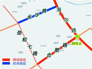 ????被堵在合肥路與海爾路路口已經(jīng)整整40分鐘了,出租車還沒有跑出1公里,王女士看著不斷跳字的計價器無奈地結(jié)賬,開始了她3公里的“健步行”。昨天是海爾路與長沙路路口封閉施工后第一個工作日,從早上7時開始,海爾路從海爾立交橋到合肥路路段,以及合肥路從海爾路到勁松七路路段出現(xiàn)約2.5公里的交通擁堵,超過4000輛車被分別堵在了路上,交警隨即趕到現(xiàn)場展開疏導,直到上午10時左右,近3個小時的大堵車才徹底結(jié)束。