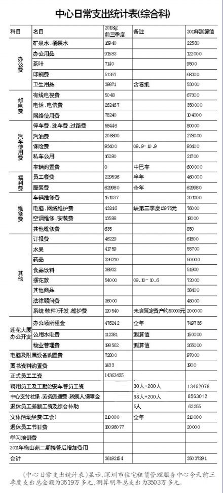 網(wǎng)友曝光的深圳市住宅租賃管理服務(wù)中心日常支出清單