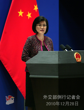????2010年12月28日,外交部發言人姜瑜主持例行記者會。