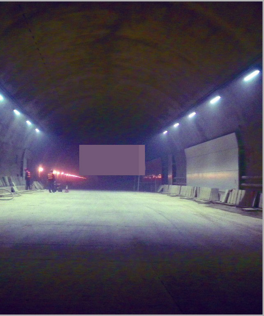 ????“現(xiàn)在施工人員除了鉆孔安裝護板外,另一項主要工作是鉆孔安裝燈具,大部分燈具都是安裝兩排,有的地方燈具則要安裝密集一些?!笔┕と藛T王工正在對隧道最上部鉆孔,該區(qū)域是風(fēng)機安放處,風(fēng)機將有效保證隧道內(nèi)通風(fēng),因為風(fēng)機的安裝,燈具自然也需要多安裝一些,起到提示作用。