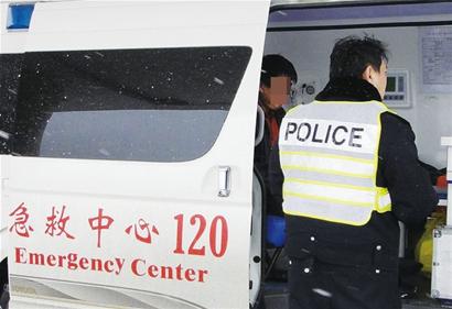“初步判斷他現在的傷勢并不嚴重,要是他在急診室里繼續撒酒瘋,很可能會影響到醫護人員和其他病人的安全?!?20急救人員現場判斷稱,兩名110民警將男子帶下救護車,送往附近的邊防派出所醒酒。目前警方正在調查此事。(方達 黃飛 攝影報道)